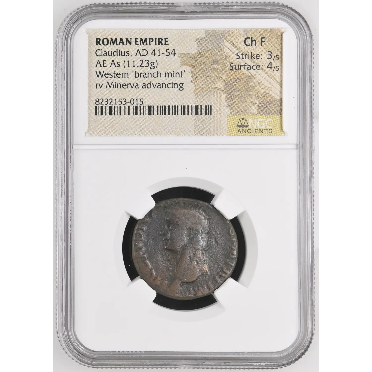 Roman Empire AD 41-54 AE As Claudius NGC Ancients Ch F