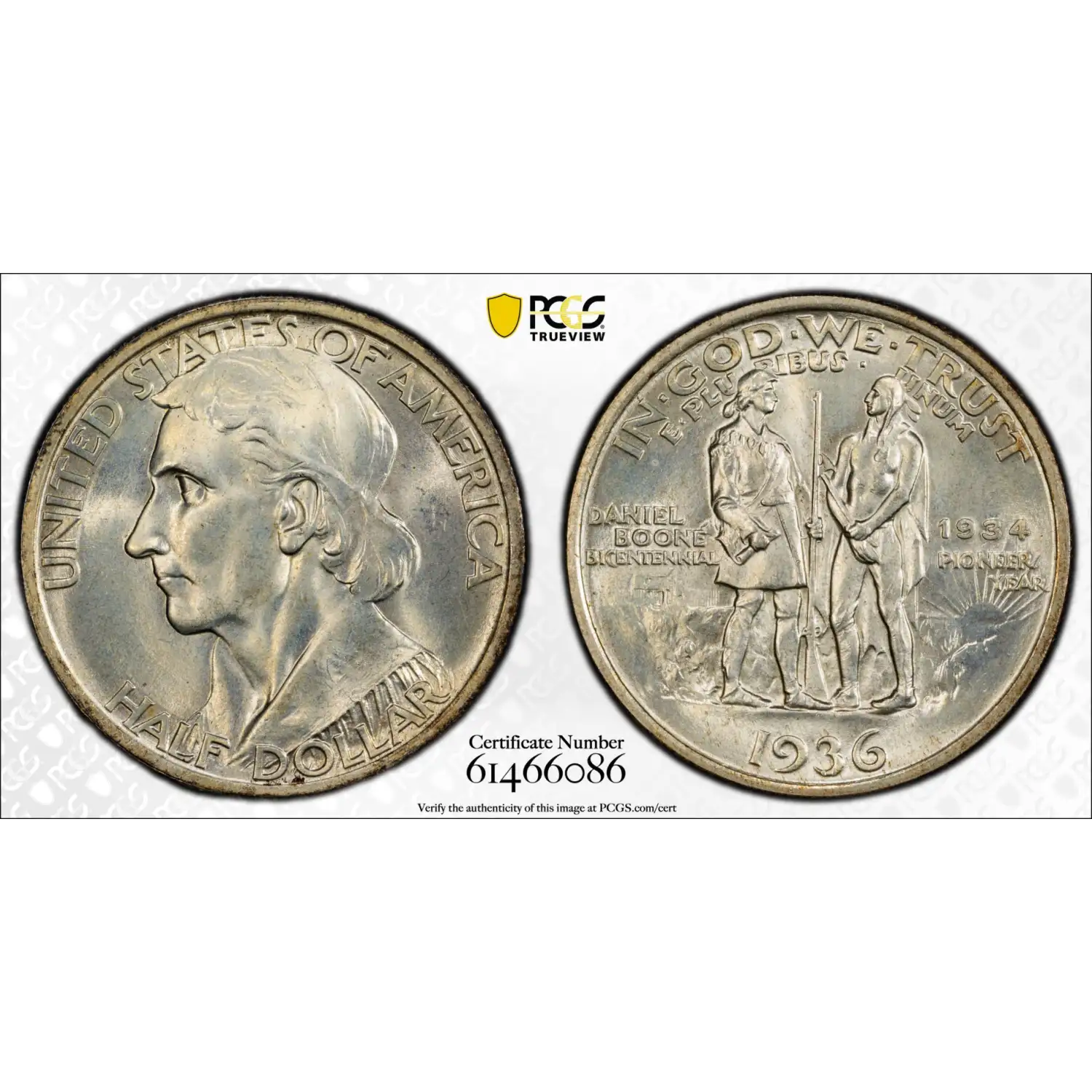 1936 Classic Commemorative Daniel Boone Bicentennial PCGS MS-65 Boone