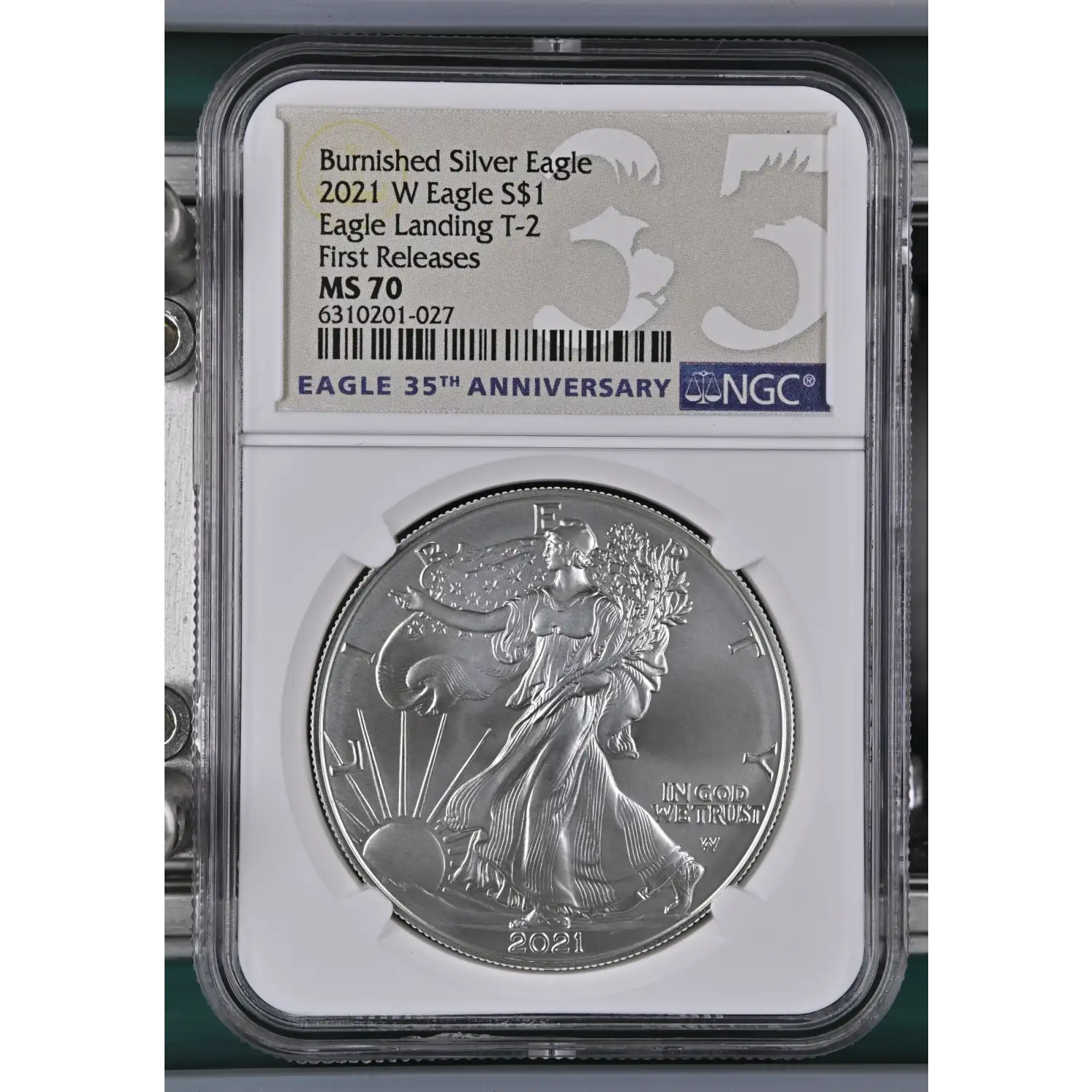 | Variety | Eagle Landing T-2 First Releases Burnished Silver Eagle |