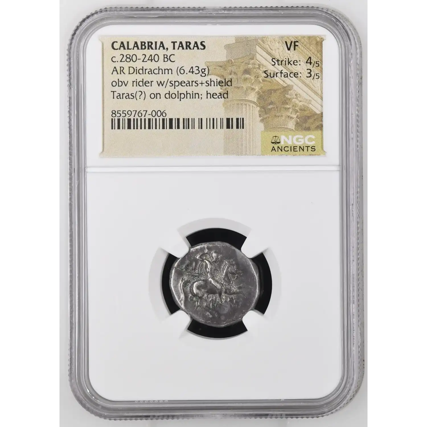 Greece Taras 280-240 BC AR Didrachm NGC Ancients VF